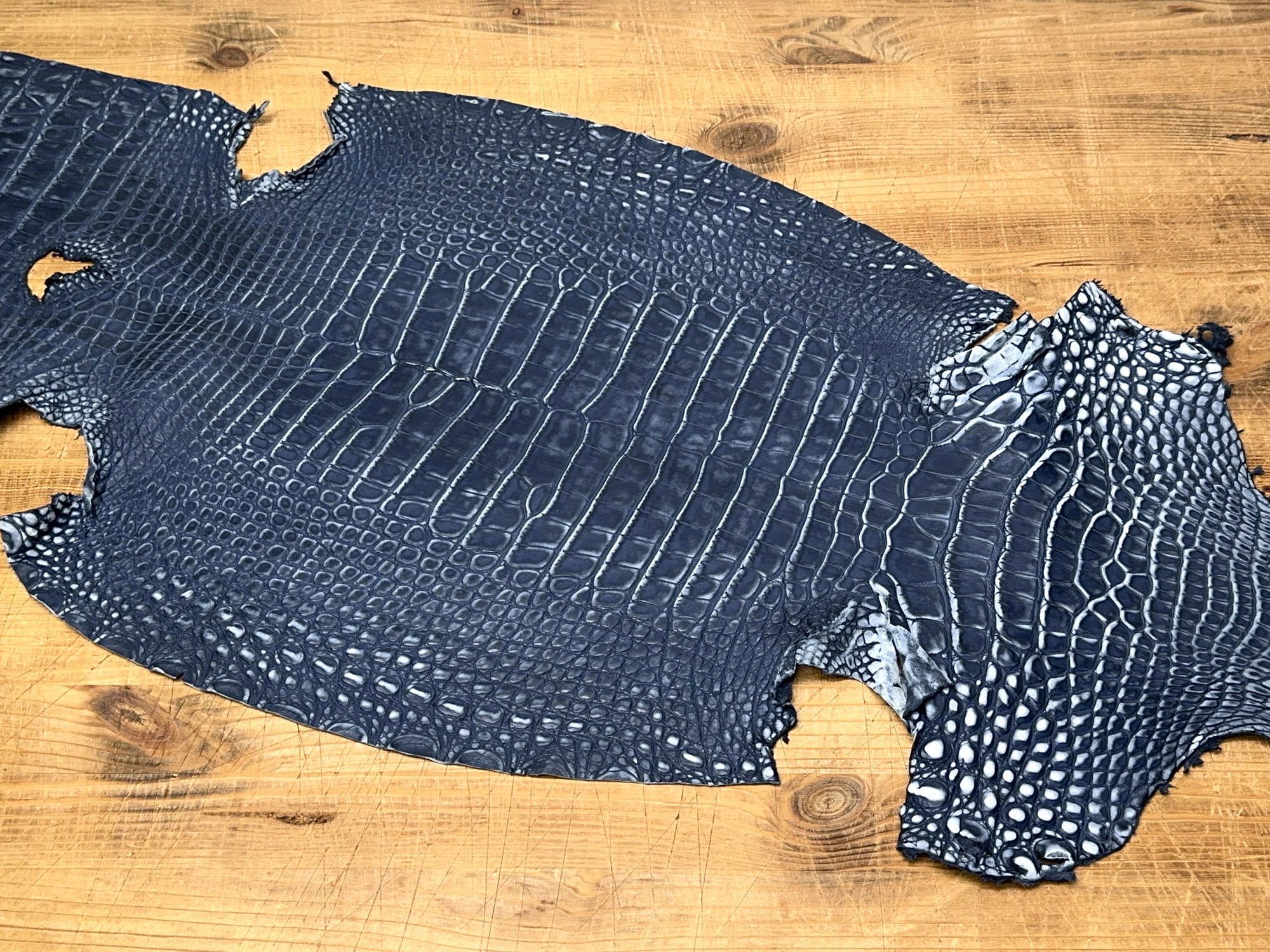 Крокодил матовый синий японский нубук