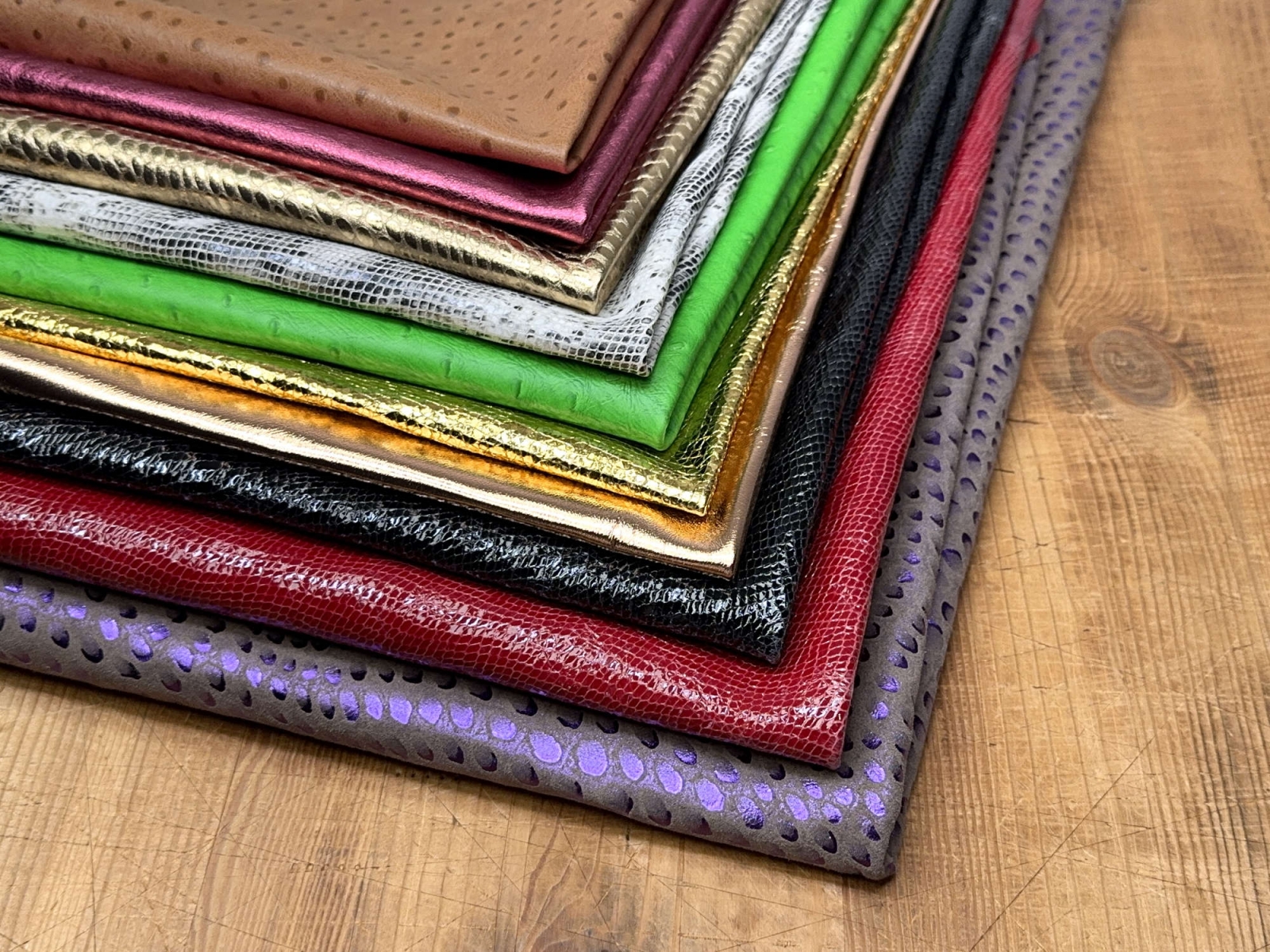 Палітра, представлена на сайті, велика і у нас ви можете купити кольорову шкіру найрізноманітніших відтінків. Але враховуйте той факт, що обраний колір навряд чи повториться у наступній партії товару. Тому потрібно правильно розрахувати та одразу придбати необхідну (або навіть із запасом) кількість матеріалу.